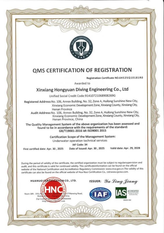 新鄉(xiāng)市鴻源潛水工程有限公司,有從事潛水行業(yè)二十多年的潛水團隊。公司具有獨立法人資格,注冊資金600萬元。   公司的潛水人員、潛水檢測人員、潛水焊接人員均經(jīng)過正規(guī)培訓(xùn),全部持有國內(nèi)權(quán)威機構(gòu)頒發(fā)的資質(zhì)證書。我公司水下焊接可靠,質(zhì)量優(yōu)良,技術(shù)過硬,可水下焊接鋼管樁,水下焊接犧牲陽極鋅塊,水下焊接連接梁,水下封堵焊接等等施工,報價合理,拒絕暴利,竭誠為您服務(wù)!水下電焊工程,水下電焊報價合理水廠電廠的水池、水道清淤、泵房清理、管道鋪放、攔污柵清污、更換閘門起落、導(dǎo)流洞、水庫壩體等維修施工水下補強加固:對水利電力系統(tǒng)水庫、大壩及沿海內(nèi)河港口、碼頭等水工建筑物水下鋼結(jié)構(gòu)或混凝土結(jié)構(gòu)缺陷進行。無論是對現(xiàn)在或?qū)恚紝⑹且豁椃浅S幸饬x的工作。水下焊接將成為水下作業(yè),水下安裝,水下維修等水下作業(yè)工程中不可或缺的重要工藝手段.公司堅持“先進的技術(shù)設(shè)備.優(yōu)質(zhì)的服務(wù)質(zhì)量.服務(wù)效率.熱情的服務(wù)態(tài)度,為生產(chǎn)經(jīng)營理念,以拒絕暴利合理收費為原則立足全國市場。我們將以優(yōu)質(zhì)的產(chǎn)品與售后服務(wù)來打造用戶良好體驗。愿同新老客戶竭誠合作、互惠互利、共創(chuàng)輝煌!水下電焊工程,水下電焊報價合理,鋼圍堰清淤公司鴻源-水下電焊工程,水下電焊報價合理,鋼圍堰清淤公司,水下電焊工程。      新鄉(xiāng)市鴻源潛水工程有限公司我公司成功打造鴻源優(yōu)質(zhì)服務(wù)。公司的潛水人員、潛水檢測人員、潛水焊接人員均經(jīng)過正規(guī)培訓(xùn),全部持有國內(nèi)權(quán)威機構(gòu)頒發(fā)的資質(zhì)證書。經(jīng)過多年經(jīng)營,公司具備公司具有獨立法人資格。